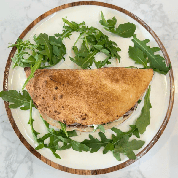 BBQ Beef Foldy$14.90cheese, caramelized onion, rocket, slow cook short ribs, bbq glaze, jalapenos, hot sauce×